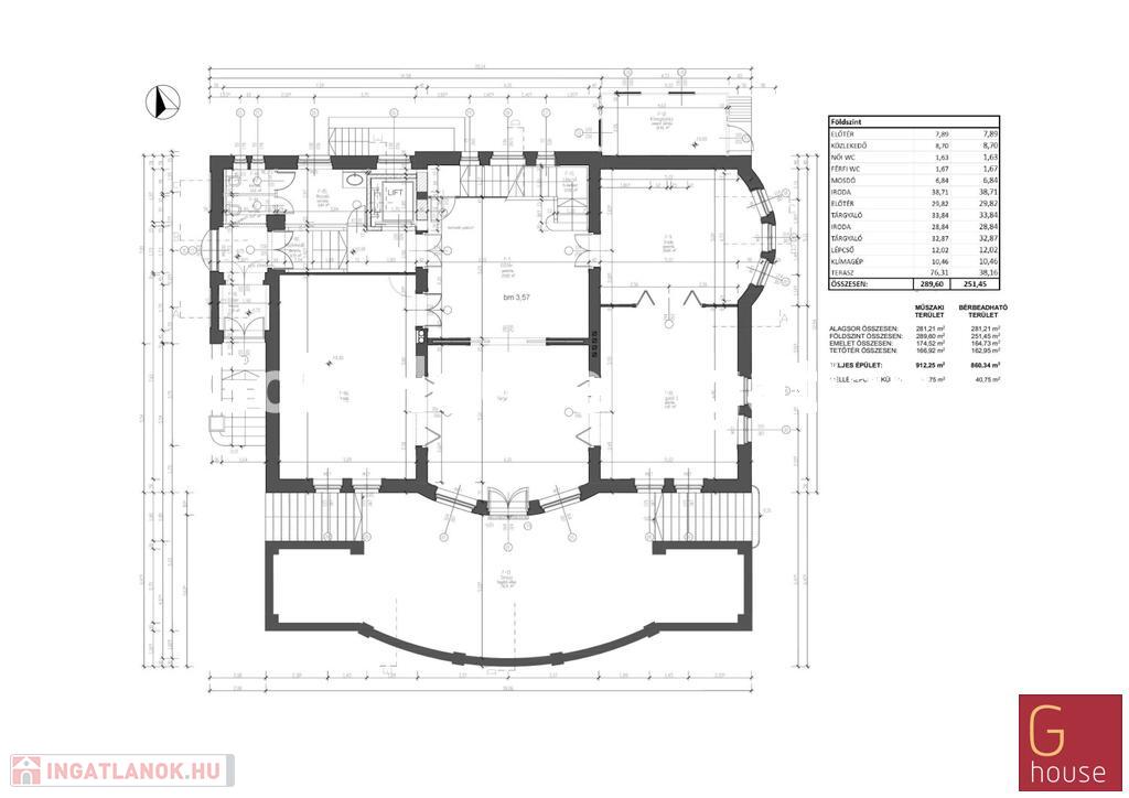 Elosztás: fszt: 4 iroda, mosdók, terasz,