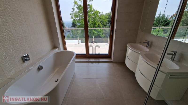 Budapest III. kerület Táborhegyen az Erdőalja úti iskolához közel kiadó egy újépítésű, luxus minőségben kivitelezett ikerházfél.