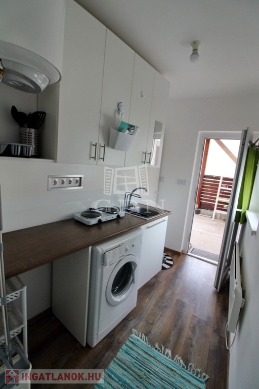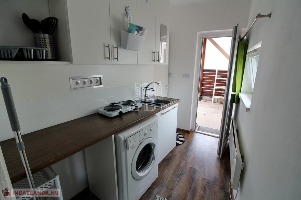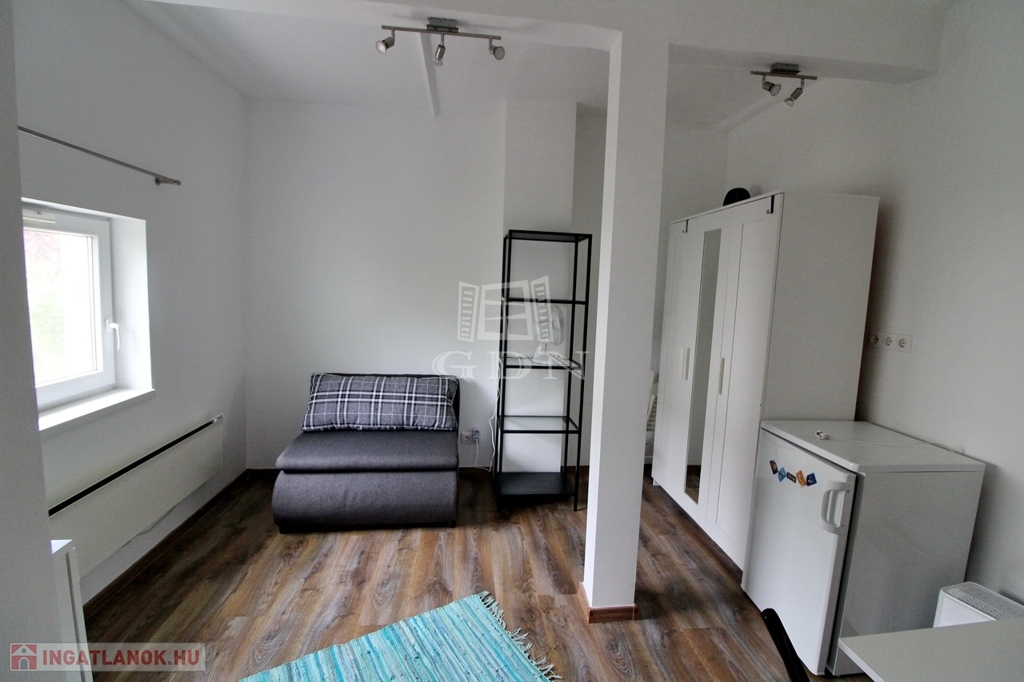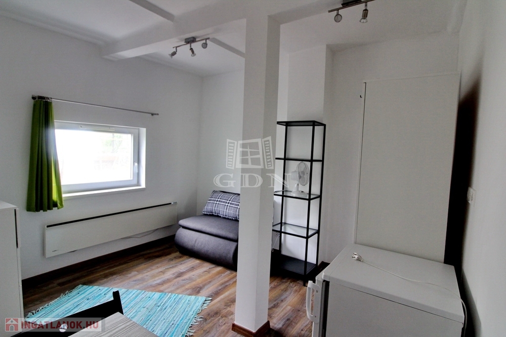 A közelben Tesco, kisebb boltok, piac, orvosi rendelő, mind megtalálható. A minigarzon egy kertes ház melléképületében található, az udvar és az autóbeálló közös, de a lakás teljesen elszeparált. A pár éve teljeskörűen felújított épület megújult kívül belül, szoba, tusoló, külön WC, és egy kis konyha kapott helyet benne. A képen látható berendezésekkel, (mosógép, hűtő, rezsó, egy személyes kinyitható ágy, komód, szekrény, könyves polc) hosszútávra, de minimum egy évre kiadó. A fűtésről modern elektromos panelek gondoskodnak, minden fogyasztás külön mérő óra alapján fizetendő. Közös költség nincs, TV és internet használat a bérleti díjon felül fizetendő.