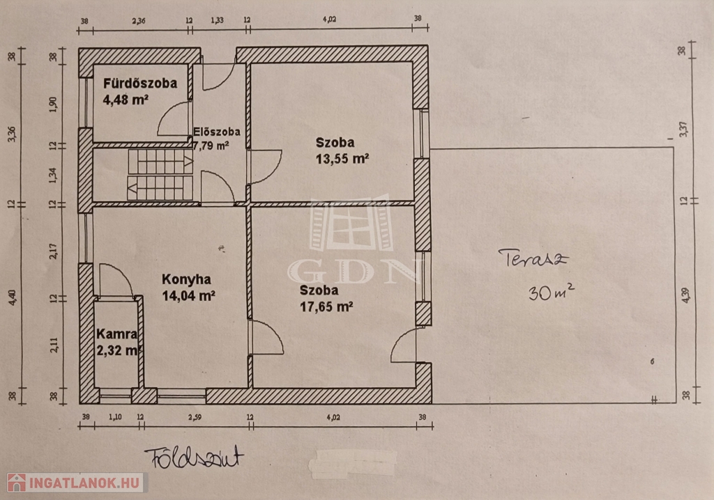 Erkély kb. 4 m² ; Terasz: 30 m².