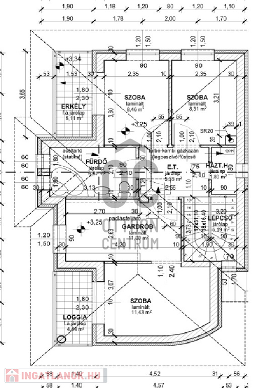 - emeleti részén: 3 hálószoba, 1 fürdőszoba, 1 háztartási helyiség került kialakításra