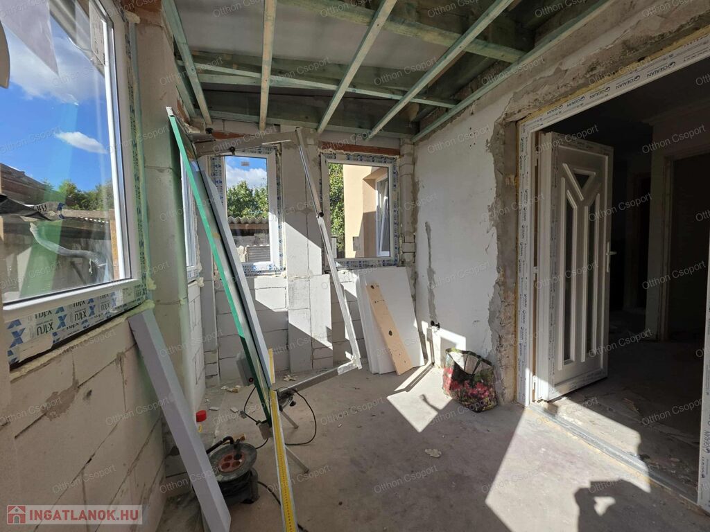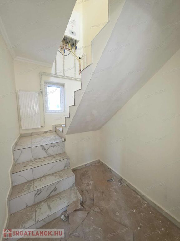 LEGYEN ELSŐ LAKÓJA ennek a 100 négyzetméteres, kétszintes, amerikai honyhás nappaliból (földszint) és 3 külön nyíló szobából (emelet) álló erkélyes, nagy kerttel rendelkező családi háznak. A belső munkálatok november elejére befejeződnek. Ami még nincs a képeken: új konyhabútor, mosogatógép, mosógép, elektromos tűzhely és sűtő. A lépcső alatt beépített szekrény, alul és felül is WC. A konyhában hidegburkolat, a szobákban padlószőnyeg.