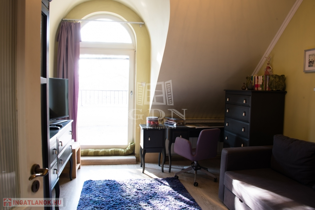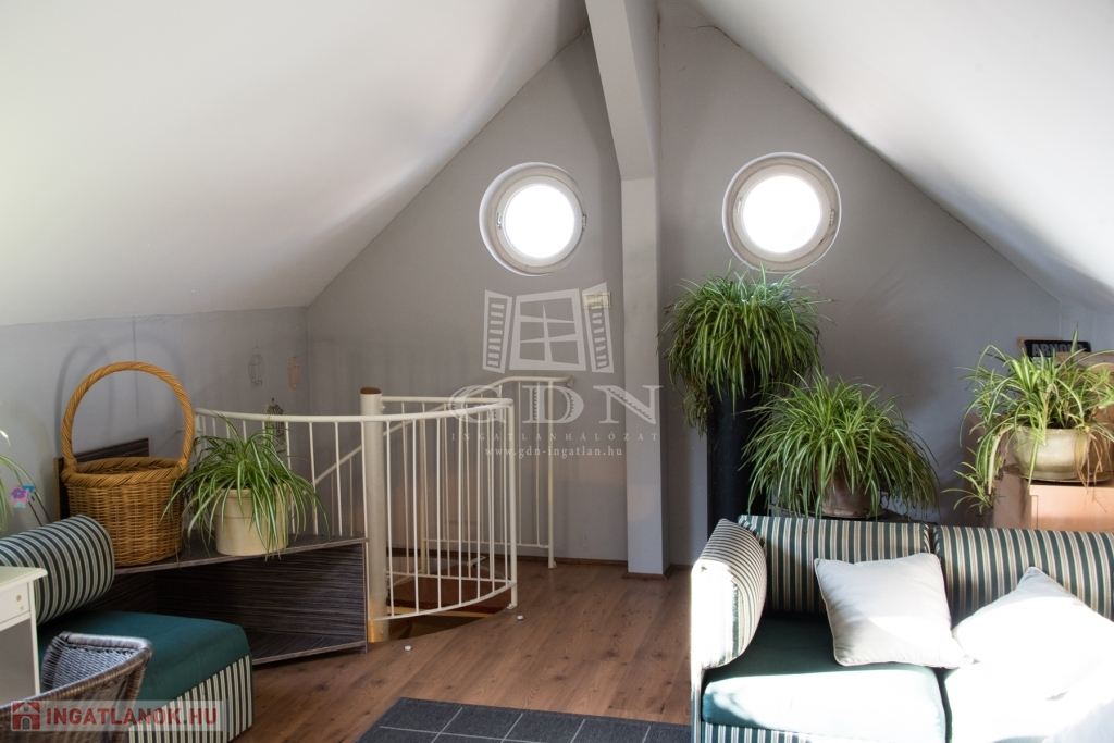 A tetőtérben bruttó 43 nm fiatalos lakótér lett kialakítva, fürdőszobával. A ház rendkívül jó elosztású, tágas terekkel, helyiségekkel rendelkezik, otthonos, kényelmes.