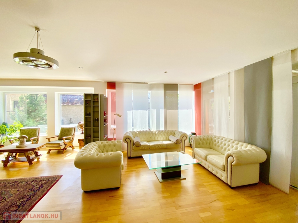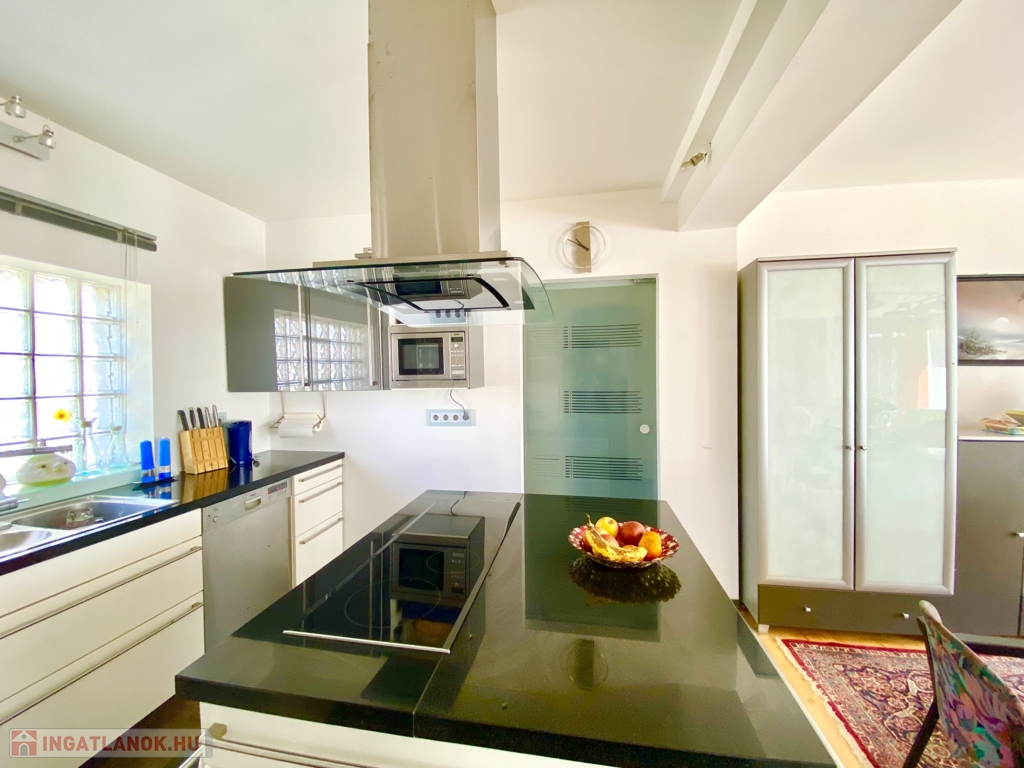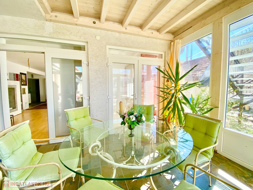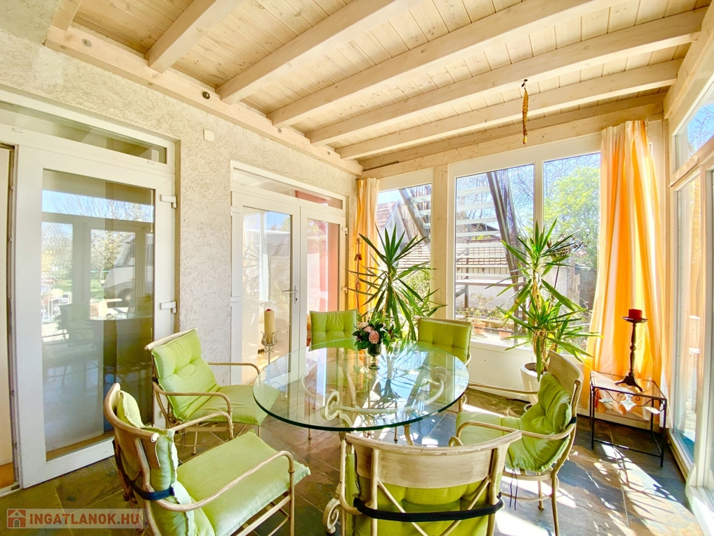 A nappalihoz kapcsolódó terasz – illetve télkert – ideális helyszínt kínál a pihenésre, feltöltődésre, vagy akár baráti, családi összejövetelekhez is, egész évben élvezhető hangulattal.