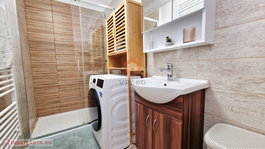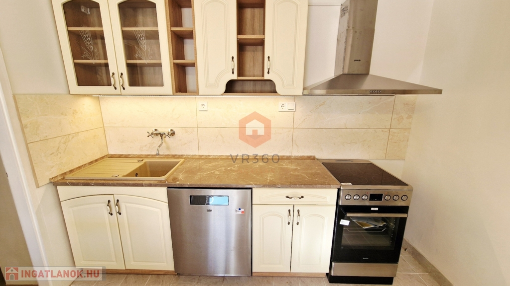 Az ingatlan 2 szobás, beépített, gépesített konyhával (mosogatógéppel), kamrával és tárolóval rendelkezik. Az egyik szoba bútorozott, a másik igény szerint berendezhető.