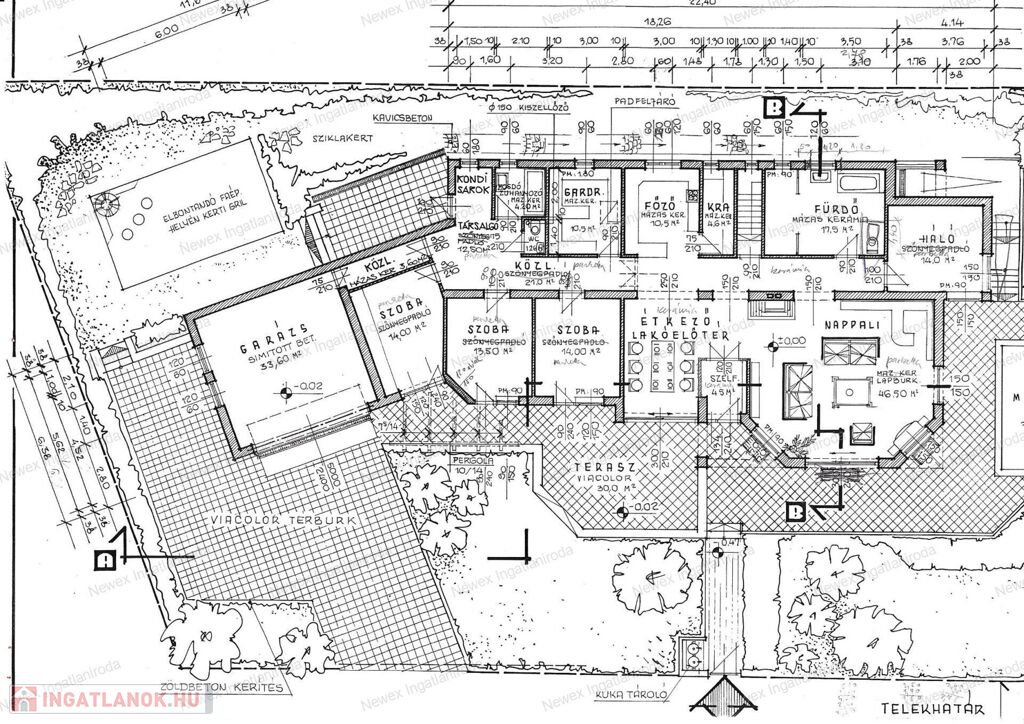 A ház földszintes lakóterében található egy tágas nappali - étkező, konyha, kamra, 4 hálószoba, 1 félszoba, 1 gardróbszoba, 2 fürdőszoba, 2 WC, előszoba, közlekedők, dupla garázs, nagyméretű nappali-kapcsolatos terasz.