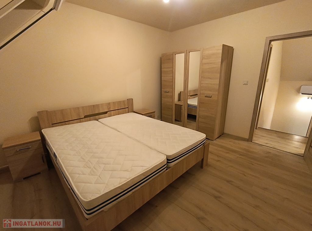 Nyíregyháza Korányi F. utcán, téglaépítésű, 150 nm lakóterületű 3 szoba + nappali, étkező konyhával beépített gépesített konyhabútorral, 2 fürdő és 3 wc-vel, gardróbbal, járólap és laminált padló burkolattal, egyedi gáz és vegyes kazán fűtéssel inverteres klímával, szép állapotú ikerház, 50 nm-es alaksorral, 1 állásos garázzsal + autóbeállóval, kb 500 nm-es kertész által gondozott parkosított telken, azonnal költözhetően részben bútorozva kiadó, akár cég részére is. Kérem keresssenek bizalommal kérdéseikkel. Az ingatlan azonosítója: 96883Érdeklődni: +36304092510 Az ingatlan azonosítója: 96883 Érdeklődni: +36304092510