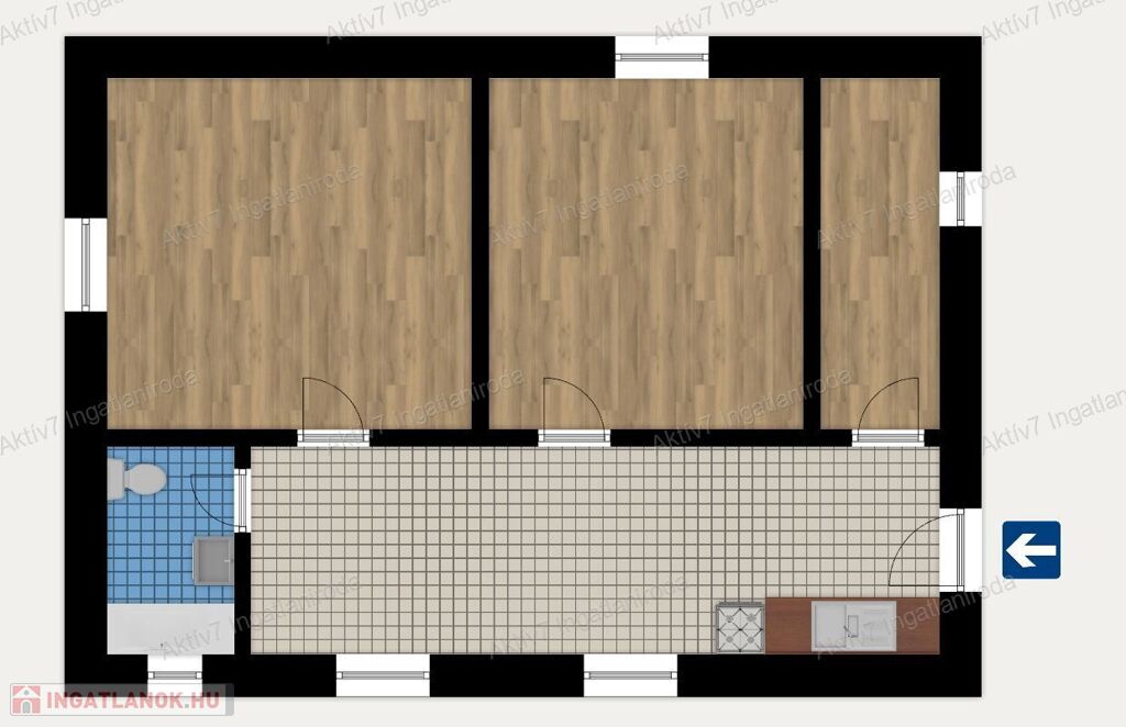 - Konyha – étkező, 2 hálószoba, gardrób, fürdő