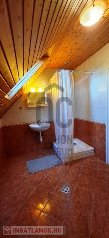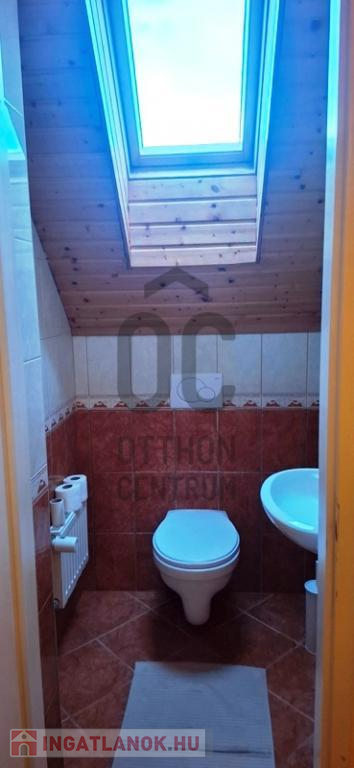 A fürdőszoba zuhanyzós, tágas, külön mellékhelyiséggel rendelkezik.
