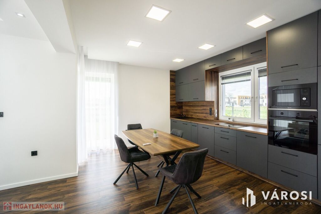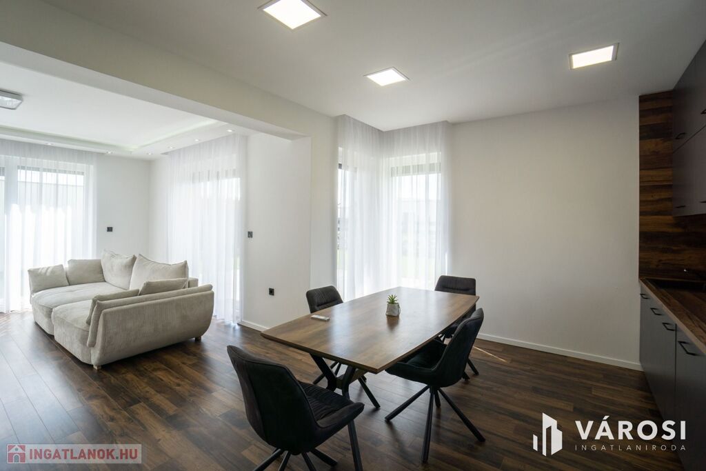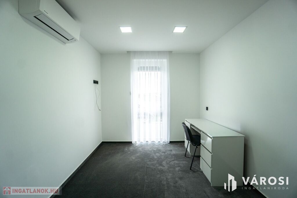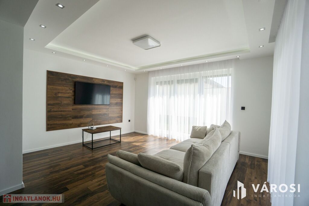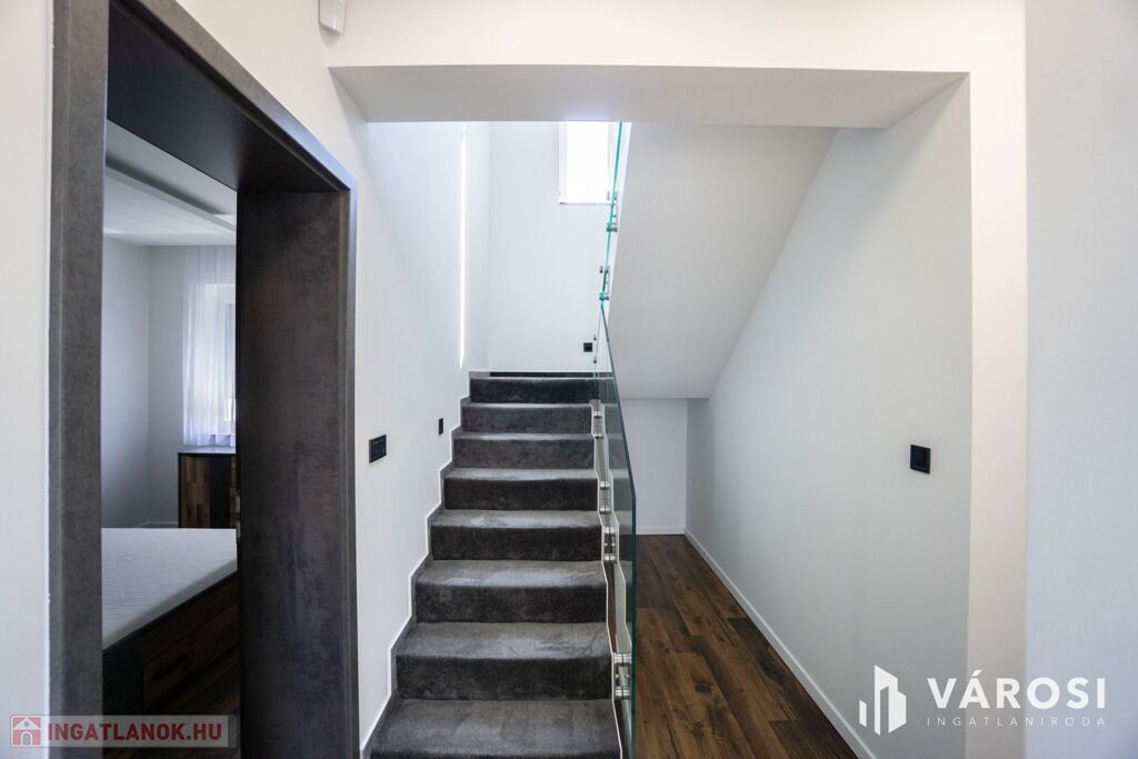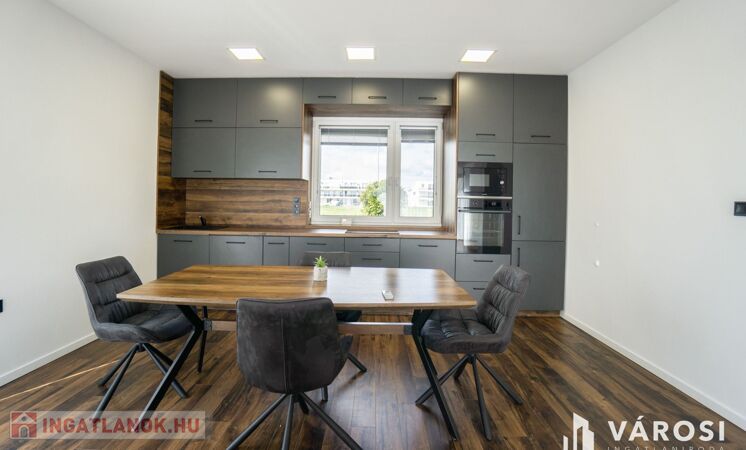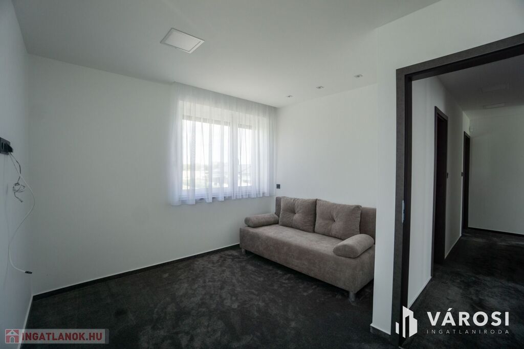 Az ingatlan téglaépítésű, lapos tetős, belső késtzintes kialakítású, modern stílusban épült 2 éve.