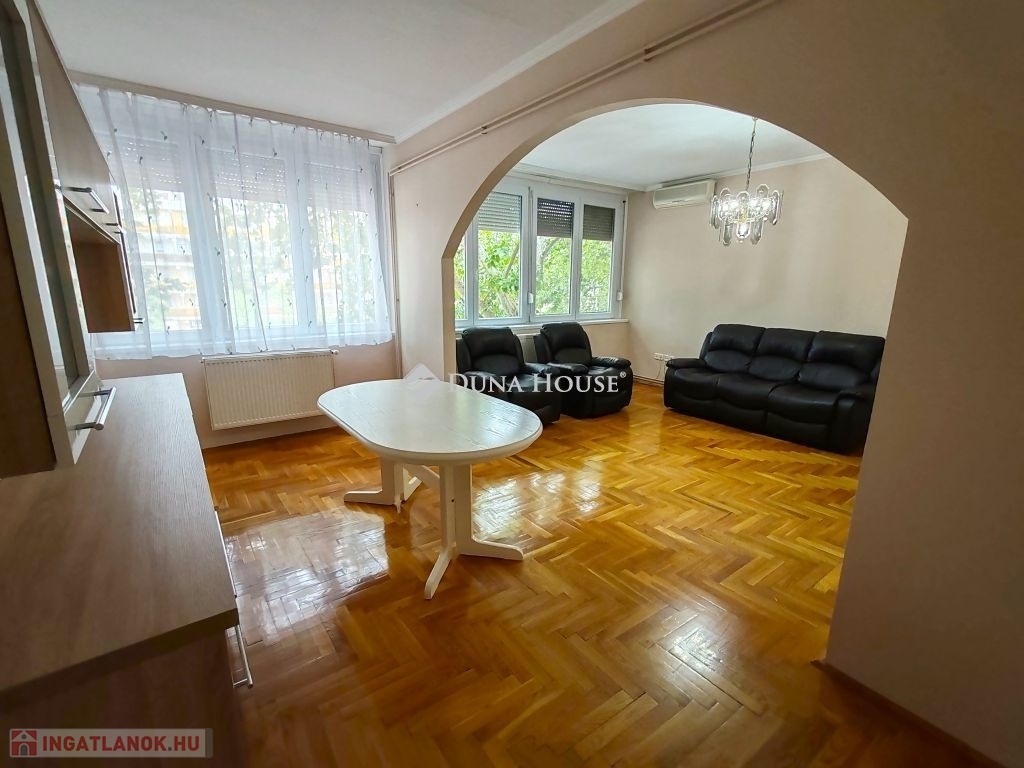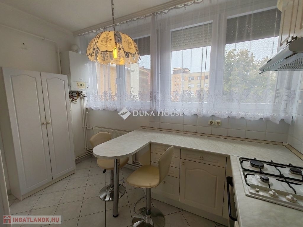 Békéscsaba belvárosában, a Szökőkútnál KIADÓ egy 2. emeleti, 76 nm-es, nappali + 2 szobás, egyedi fűtéses, részben bútorozott lakás.