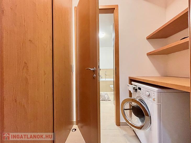 Az erkély a csendes belső udvarra néz, így a város közepén is nyugalom várja az új tulajdonost. A ház szolgáltatásai – konditerem, szauna, jakuzzi – tovább növelik a mindennapi komfortot.