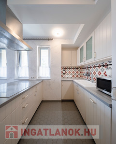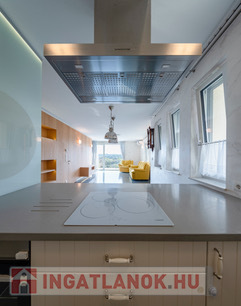 Modern, gépesített konyha: mosogatógép, hűtő, mélyhűtő, sütő, mikró, indukciós főzőlap
