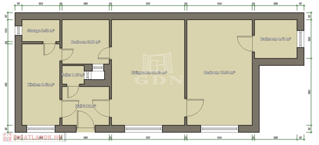 1 tágas nappali és étkező, hálószoba + 1 félszoba – ideális családnak, pároknak vagy akár Home Office-ra