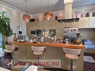 A modern, amerikai konyhás nappali és étkező egy elegáns, világos térben kapott helyet, ehhez kapcsolódik a kényelmes hálószoba, egy fürdőszoba WC-vel és zuhanyzóval, valamint egy külön vendégmosdó.