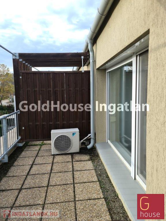 A lakáshoz tartozik egy 250 m²-es, kizárólagos használatú, parkosított kert, amelyet automata locsolórendszer lát el.