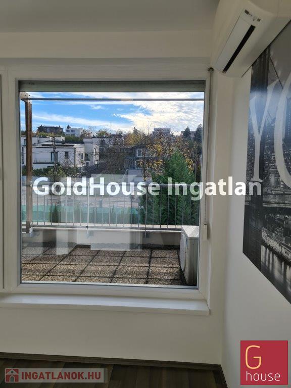 A tetőtérben egy további, 13 m²-es szoba helyezkedik el, amely saját, panorámás tetőterasszal rendelkezik.