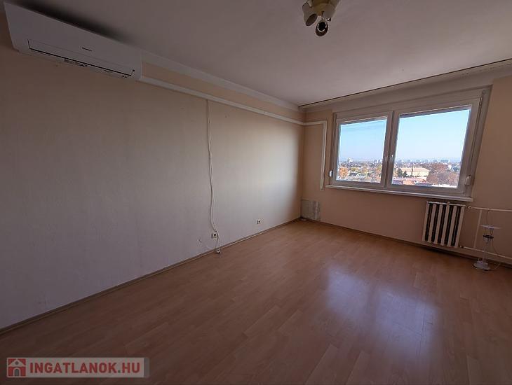 Azonnal költözhető, klímás, közeps állapotú, bútorozatlan a 9. emeleten elhelyezkedő, alacsony rezsis 34 nm-es, kis lakás kiadó szép kilátással.
