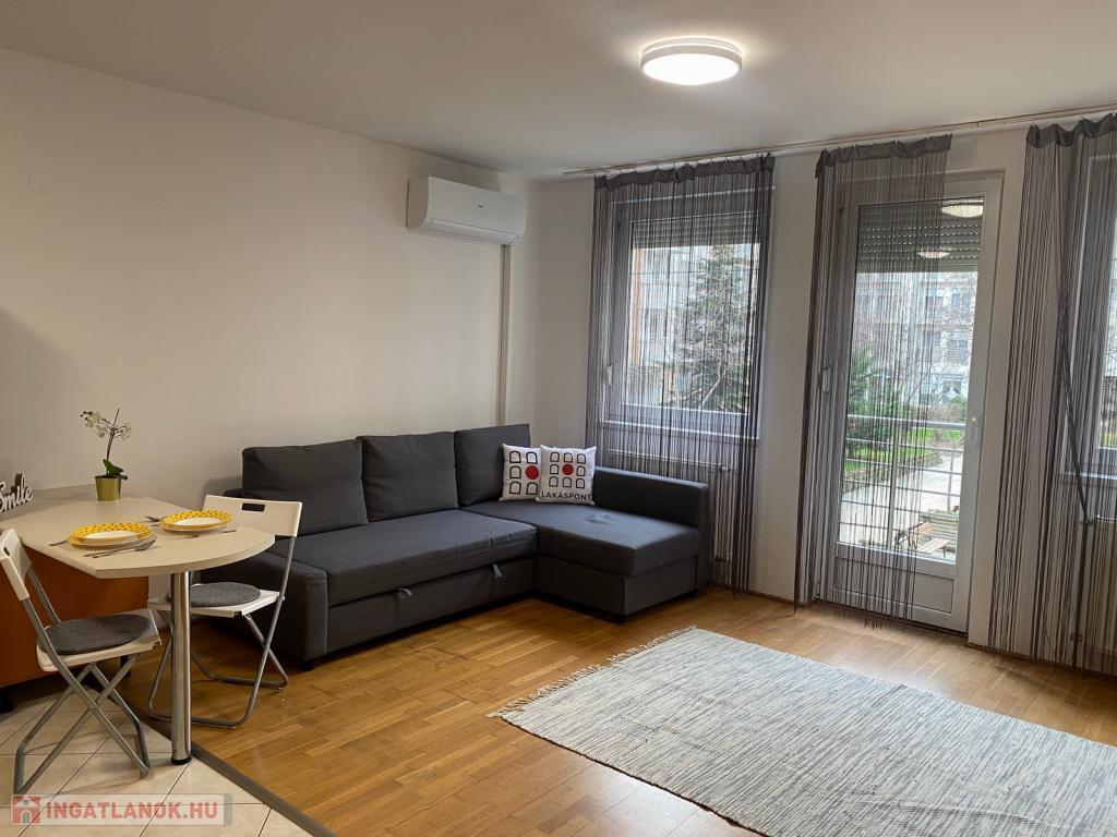IX. Klinikák állomás közelében a Viola utcában rendezett, liftes új építésű ház I. emeletén kiadó 36 nm-es, stúdió jellegű (egy légterű), ERKÉLYES, fiatalosan bútorozott és gépesített lakás!