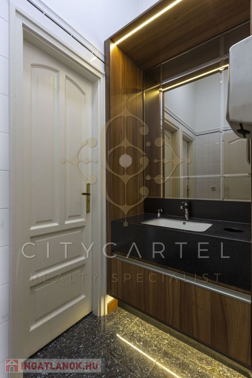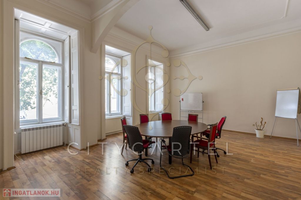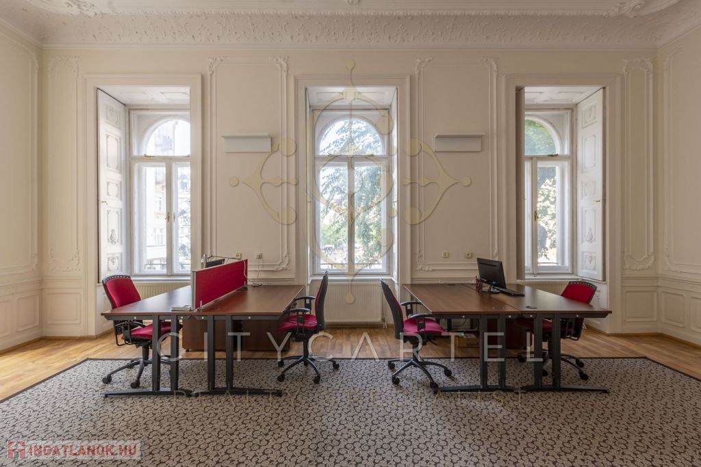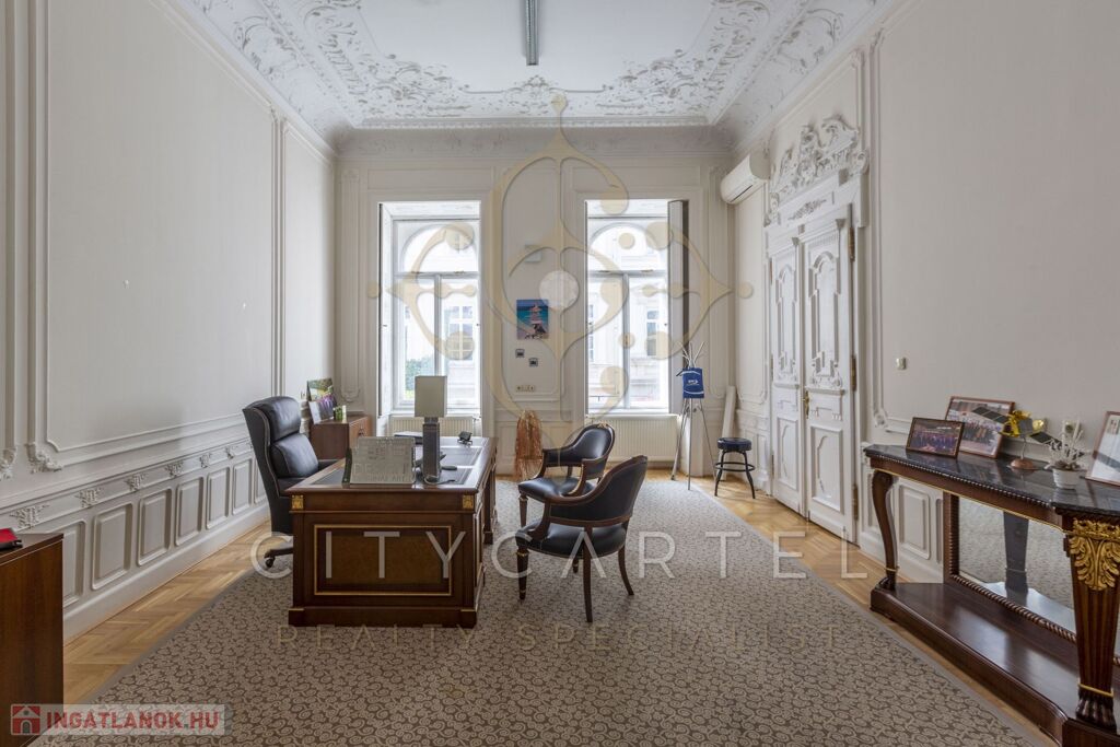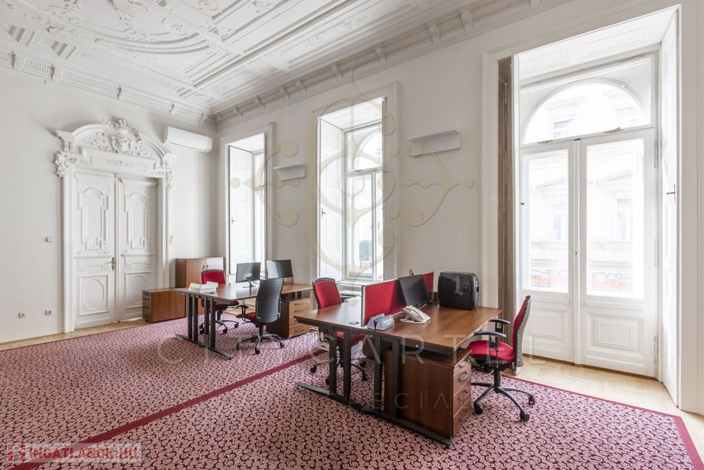 Az első emeleti, impozáns ingatlan rendkívül világos és tágas, kifinomult részletekkel díszített belső terekkel rendelkezik. Körbejárhatósága és két külön bejárata lehetőséget biztosít akár két szeparált iroda kialakítására is.