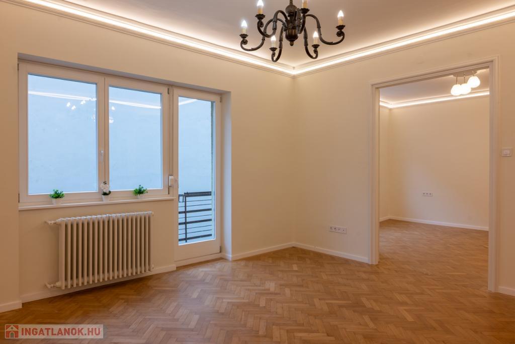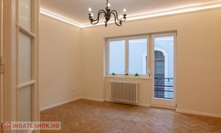 Kiadó Budapest, V.ker. - a Váci utca csendes és szép mellékutcájában - a NYÁRI PÁL utcában, rendezett, liftes ház II. emeletén egy FELÚJÍTOTT, 68 nm-es, 2,5 szobás, 2 erkélyes, BÚTOROZATLAN, légkondicionált lakás.