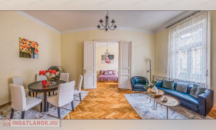 KISÁLLATTAL IS KÖLTÖZHETŐ, 88 négyzetméteres, nappali plusz 2 hálószobás, elegáns lakás kkiadó a Hercegprímás utcában, közvetlen a Bazilika közelében. Az ingatlan a társasház 4.emeletén található, lift van. Az ablakok a csendes, belső udvarra nézne. A fűtést gázkazán biztosítja, a lakás klimatizált.