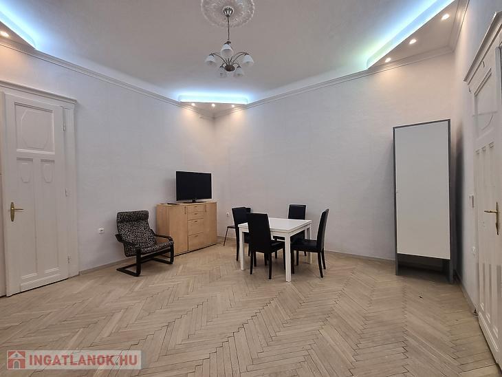 Kiadó egy teljesen felújított, igényes lakás a Veres Pálné utcában. Az ingatlan nappaliból és két külön nyíló hálószobából áll, tágas terekkel és magas belmagassággal (3,6 m), ami különösen világos és levegős hangulatot biztosít. A fűtést gázkazán biztosítja, melyhez saját mérő tartozik. Alacsony közös költség: 10 000 Ft.