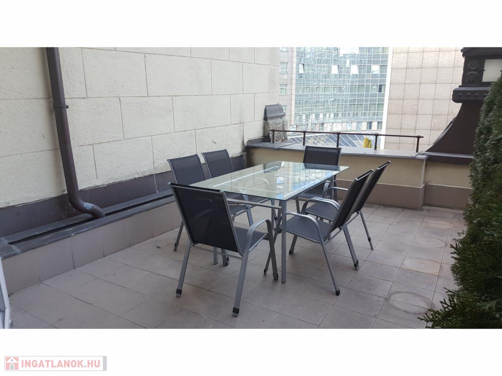Pest V. kerület a Belváros központi részén, a Kempinsky szálloda mellett, kívülről gyönyörűen felújított, belső lépcsőházas, 1911-ben épült, liftes műemlék házban, 5. emeleti, újszerű, nagy belmagasságú, 113 nm-es, nappali + 2 hálós, mosókonyhával, gardróbbal, nagyméretű, jól használható terasz-résszel rendelkező luxuslakás kiadó.