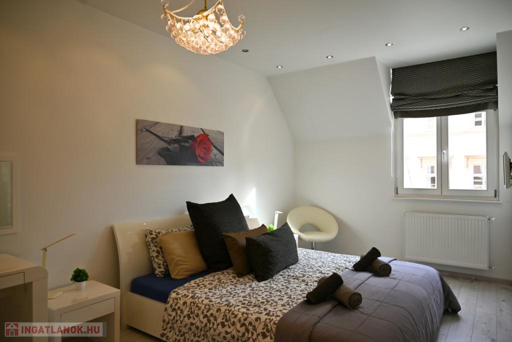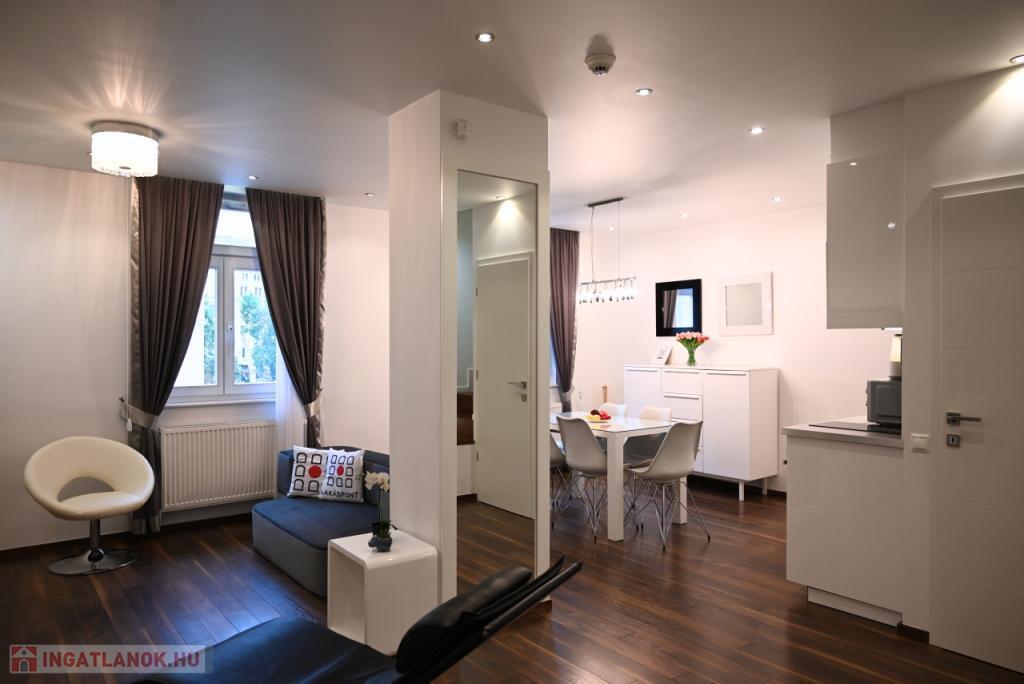 A belváros egyik legexkluzívabb részén, közvetlenül a Vörösmarty tér szomszédságában kínálunk bérbe egy 100 m-es, belső kétszintes, teljesen berendezett és modern lakást.