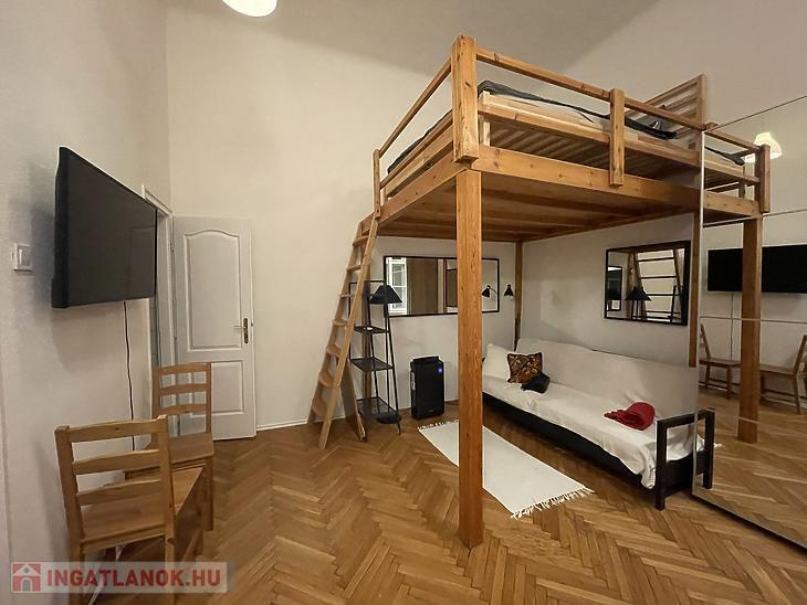 A Nyugati tér közvetlen közelében, a VI. kerület szívében kiadó egy földszinti, frissen felújított, galériás garzonlakás.