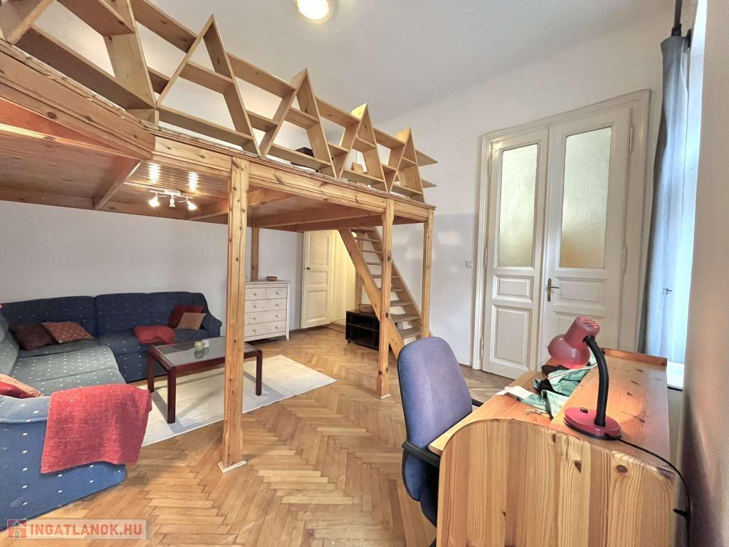 VI.kerület-ben NYUGATI közelében, kulturált környéken, az Eötvös utcában, PATINÁS, JÓL KARBANTARTOTT épületben II. emeleti 44 m2-es galériás jó hangulatú kislakás kiadó november 12-től bútorozottan, gépesítve!