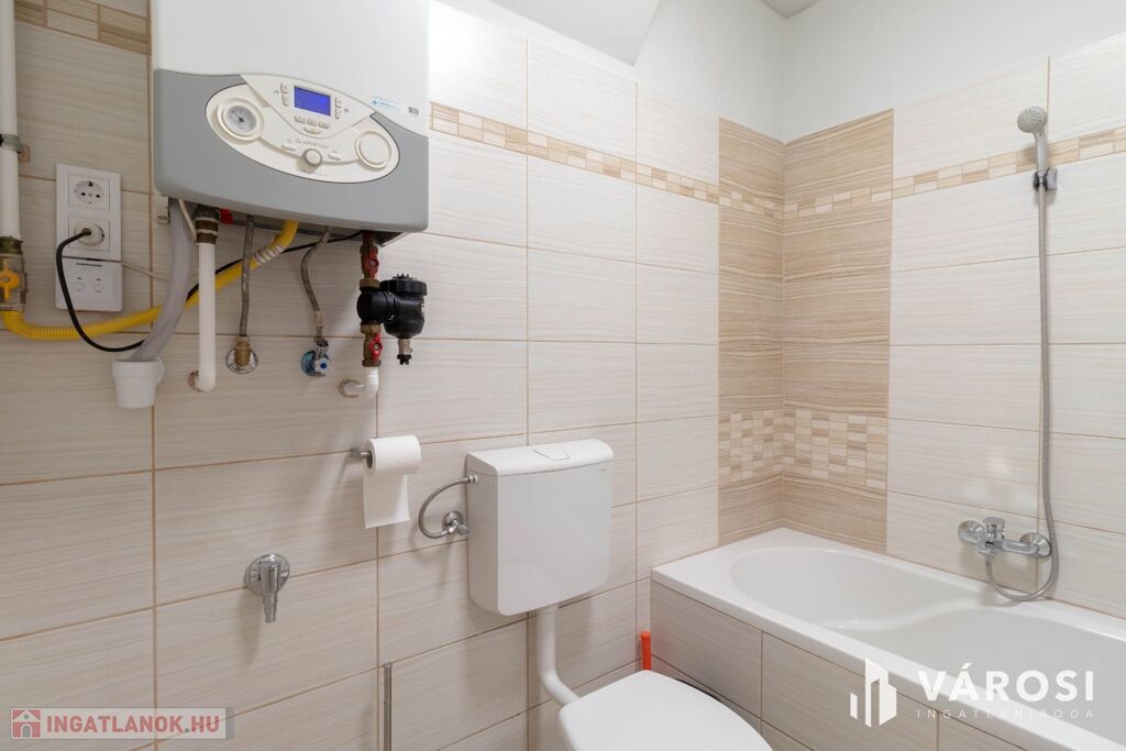 A fűtés saját, a fürdőszobában helyet kapott gázkazánnal és radiátor hőleadók segítségével történik.