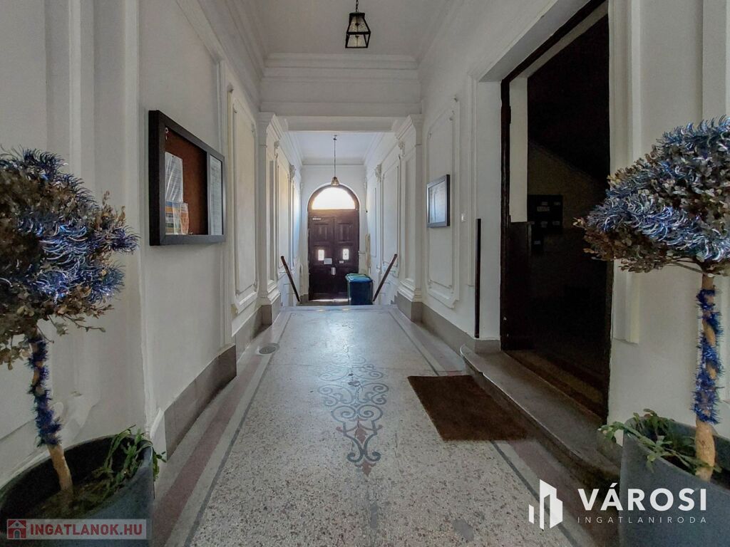 A kiadó ingatlan egy öt szintes, 1936-ban épült, kiválóan karbantartott, tégla építésű ház földszintjén helyezkedik el, a belső udvarból közelíthető meg.