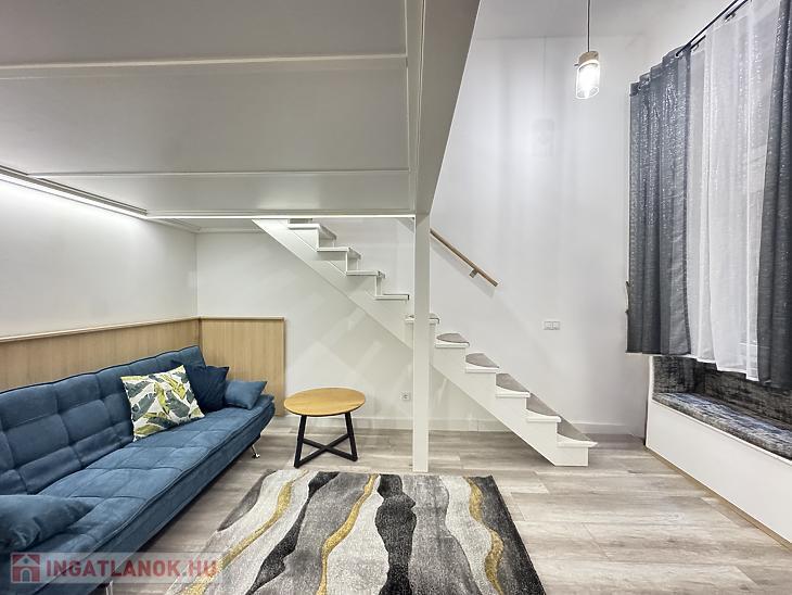 Kiadó egy teljes körűen frissen felújított, modern földszinti lakás amerikai konyhás nappalival és galériával az Eötvös utca 48.-ban, egy szép, csendes társasházban. A felújítás óta még senki nem lakott benne, minden berendezés és bútor vadonatúj.