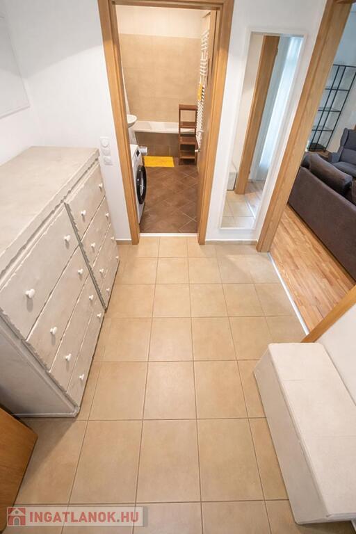 Budapest VI. kerületében, a Vörösmarty utcában, új építésű, modern, portaszolgálatos társasházban kiadó egy 41 m²-es, felújított, világos lakás.