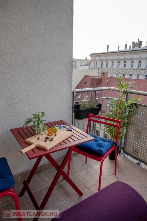 For rent in Budapest, District VI, on Paulay Ede Street, on the 5th floor of a well-maintained building with an elevator and a concierge service: a 50 sqm, LIKE-NEW apartment with an American-style kitchen + living room, 1 bedroom, and a balcony, fully furnished and equipped, offering full comfort.