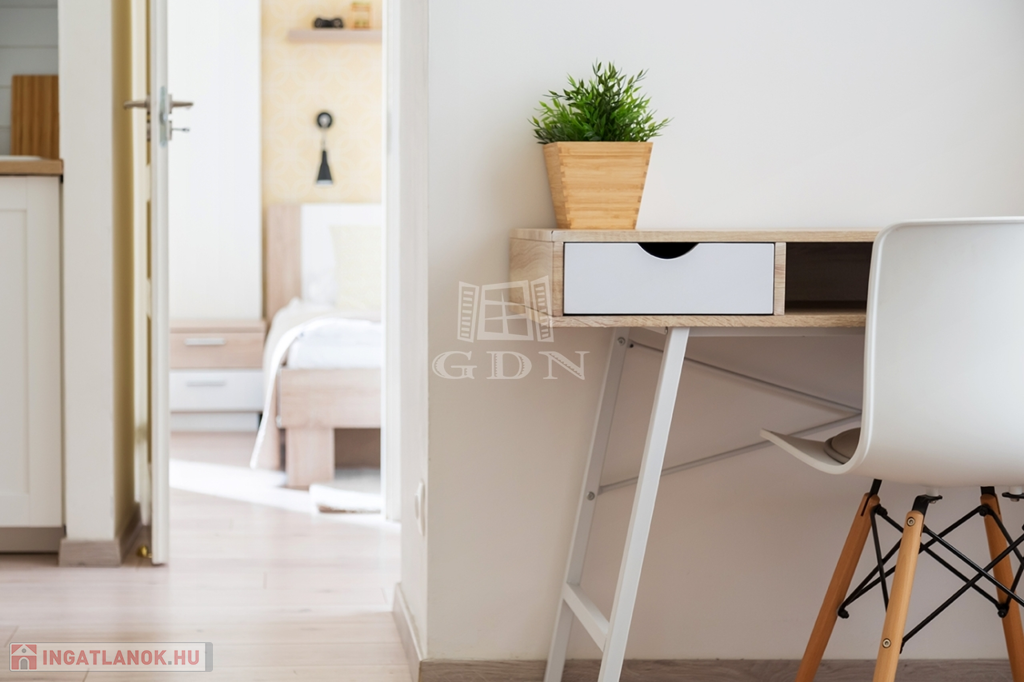 A lakásban egy amerikai konyhásnappali és egy hálószoba található.