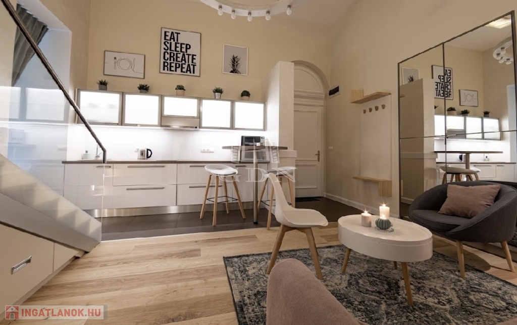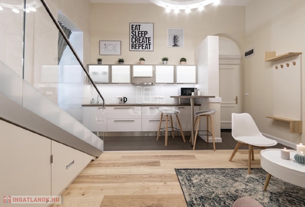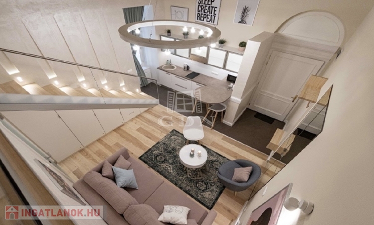 Kiadó az Ó utca központi, mégis csendes részén egy 34 m²-es, belső állógalériás ingatlan, amely lakásként és irodaként egyaránt kiválóan használható.