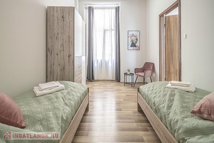 Kiadó egy világos, kényelmes, két külön nyíló szobával és egy tágas nappalival rendelkező, bútorozott és teljesen gépesített lakás a Jókai tér 6. szám alatt. A bérleti díjon felül a rezsi és közös költség díjával kell havonta számolni. A lakás egy rendezett, csendes társasházban található. A Jókai tér környéke élénk, frekventált és rendkívül kedvelt, néhány perc sétára van az Andrássy úttól és a Nyugati pályaudvartól, a közelben pedig számos étterem, kávézó, üzlet és szolgáltatás elérhető. A közlekedés kiváló: a Nyugati metrómegálló, a 4-6-os villamos, valamint több buszjárat is rövid sétatávolságra elérhető, így a belváros bármely része gyorsan megközelíthető. A lakás előzetes egyeztetéssel tekinthető meg, a beköltözés feltétele 2 havi bérleti díj + 2 havi közös költség (ez a kaució) valamint a tárgyhavi bérleti díj kifizetése. Január 5-től költözhető.