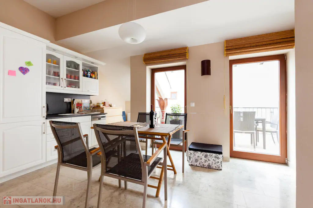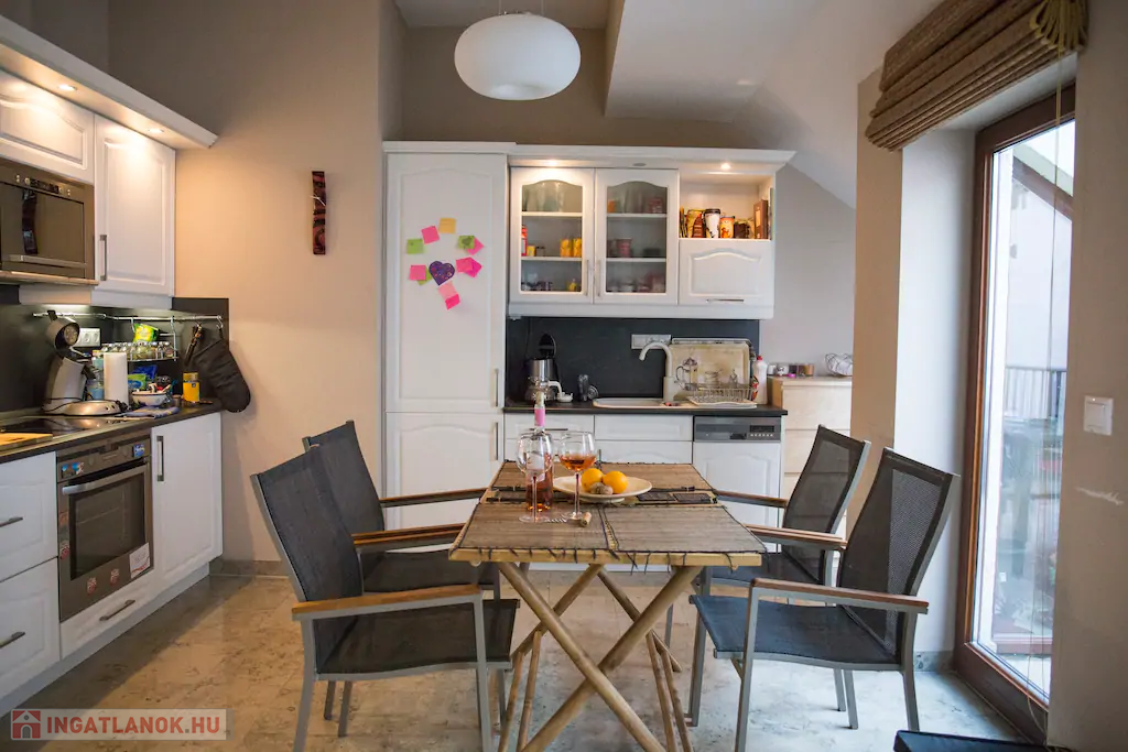 bútorozott, gépesített konyhával