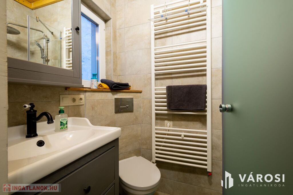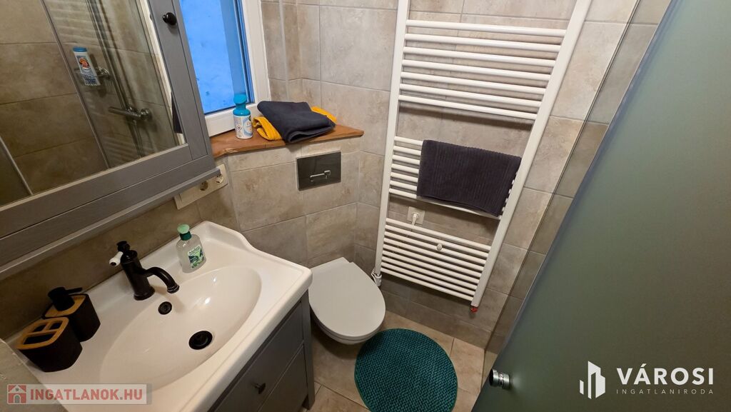 - ablakos konyha és ablakos zuhanyzós fürdőszoba + mosógép