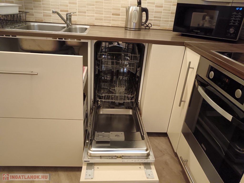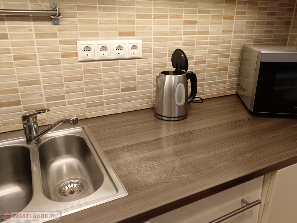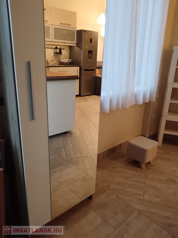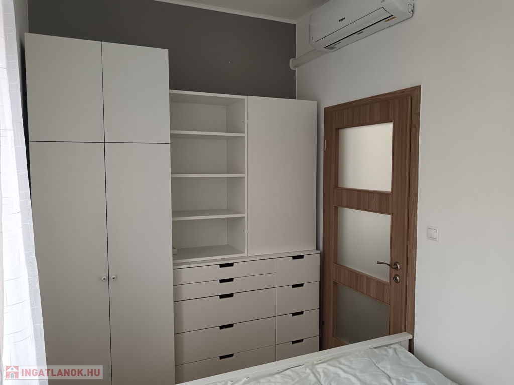 Kiadó lakás egy liftes ház 4. emeletén, csendes, belső udvarra néző, teljesen felújított, 49 m2-es lakás. A lakás teljesen gépesített, bútorozott, felszerelt. Helyiségek: nappali-konyha, külön nyíló hálószoba, hálófülke, tárolókamra, fürdőszoba, külön WC. Biztonsági ajtó, klíma, redőnyös ablakok, saját víz-, gáz-, villanyóra biztosítja a kényelmet. A lakásba háziállat nem hozható, dohányzás nem megengedett.
