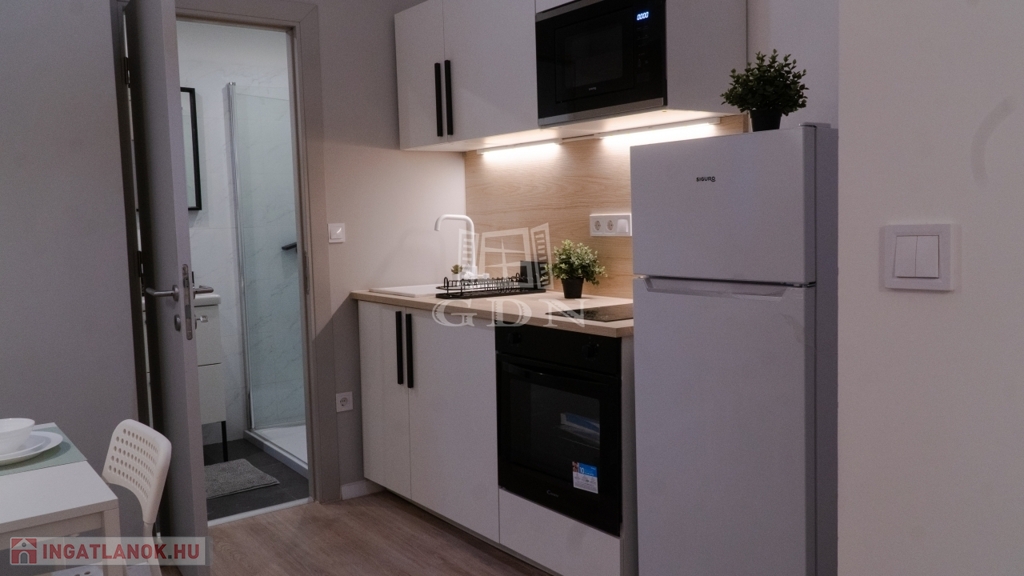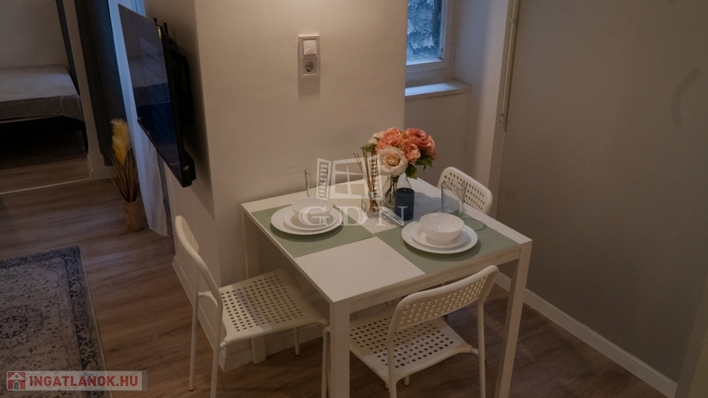 Budapest VIII. kerületében, a Népszínház utcában kiadó egy 25 m²-es, teljesen bútorozott garzonlakás. Az eszközök szintén teljesen újak, illetve még használva sem voltak.