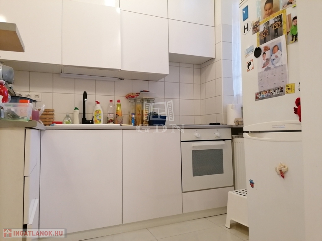A lakás teljesen bútorozott és gépesített (mosógép, hűtő, mosogatógép, sütő, elektromos főzőlap, beépített páraelszívó).