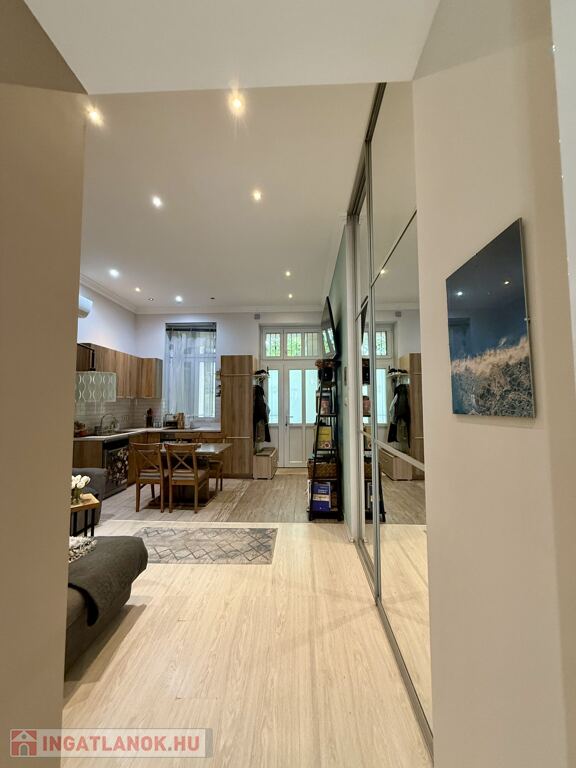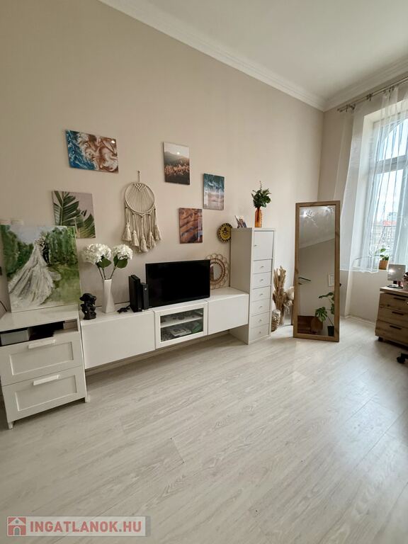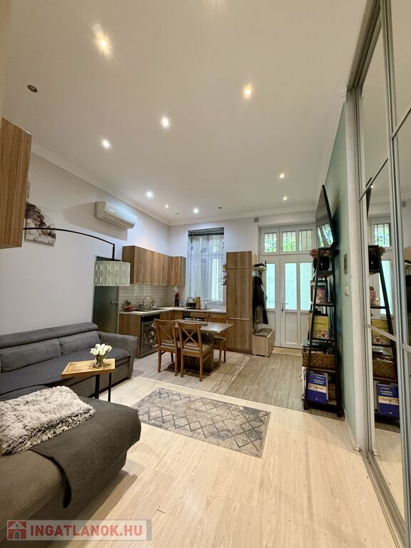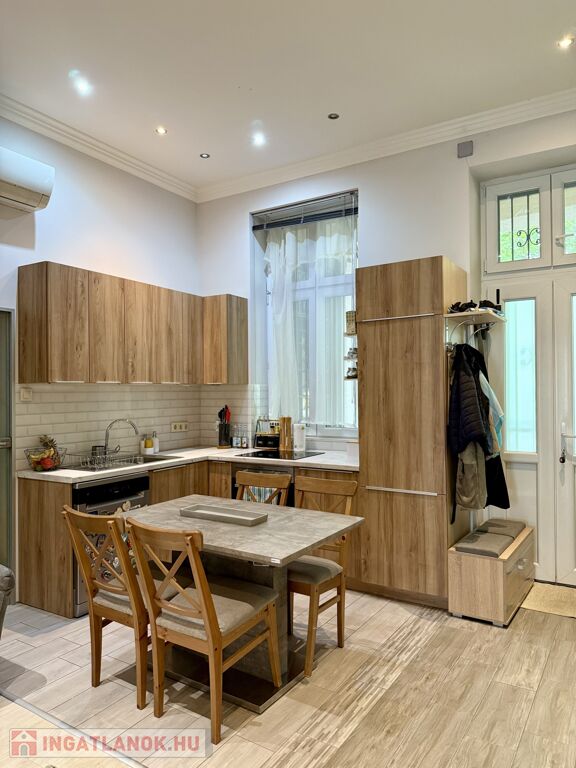 Kiadó Rákóczi úthoz közel a Fiumei úton egy 3 emeletes lift nélküli téglaépítésű társas házban lévő galériás, fürdőkádas, amerikai konyhás nappali, spejzzal, bútorozott, gépesített lakás.