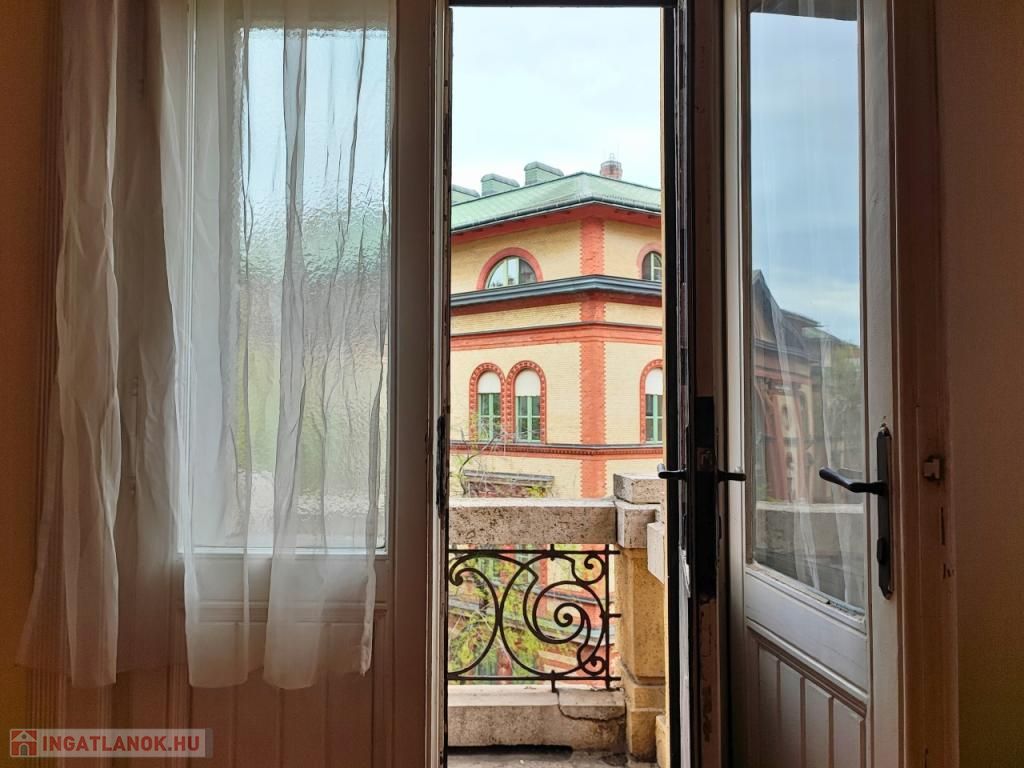 Két szoba ablakai utcára, egy a ház csendes, belső udvarára néz. Az ablakok rendenyősek.