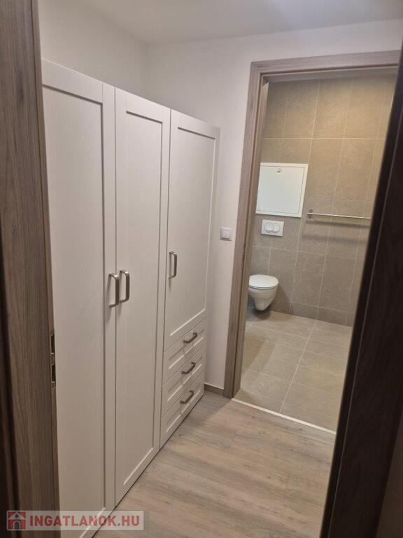 A lakás egy újépítésű 7 emeletes társasház 3. emelén található. 51 m2-es amerikai konyhás nappalival egy külön hálószobával, fürdőszobával és egy külön gardrób helyiséggel.