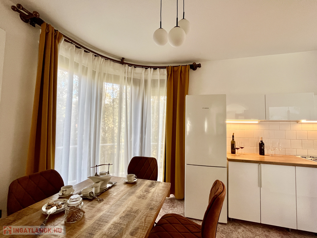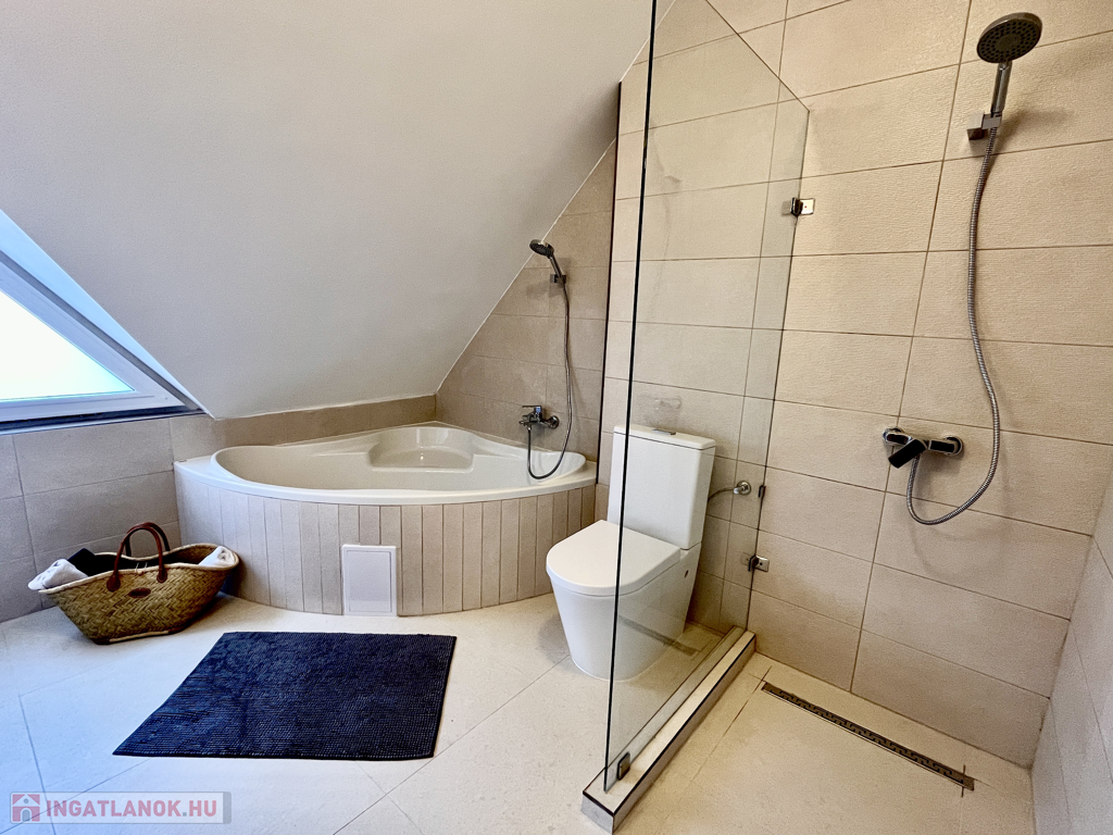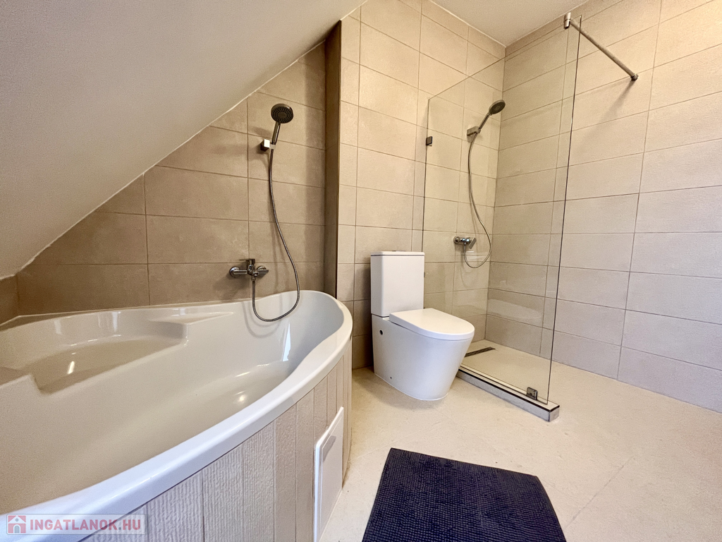A kifogástalan állapotban lévő, hangulatos, szép öt szobás lakás fűtéséről fali gázkazán gondoskodik padlófűtéssel, a két fürdőszobával és vendégmosdóval felszerelt ingatlan - sarokkáddal, épített zuhanyozóval és duplamosdóval felszerelt ablakos - fürdőszobája és mosdója frissen felújított. A tágas, fatüzeléses kandallóval ellátott nappali mellett - teljeskörűen gépesített, újszerű beépített konyhabútorral és kis kamrával kialakított - étkezős konyha szolgálja a lakók kényelmét. A rendkívül napos emeleti lakás szobái klímásak, fa külső nyílászárói redőnnyel felszereltek, a külön nyíló négy hálószoba kellemes zöldre néző kilátással bír. A többszintes lakás legfelső szintjén került kialakításra a negyedik szoba külön zuhanyzós fürdőszobával, kiválóan alkalmas vendégek elszállásolására, gyerek kuckónak vagy otthoni munkavégzéshez.