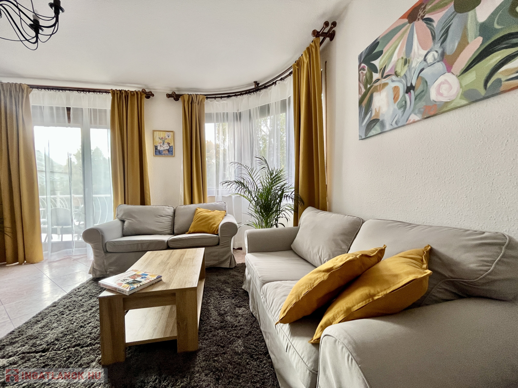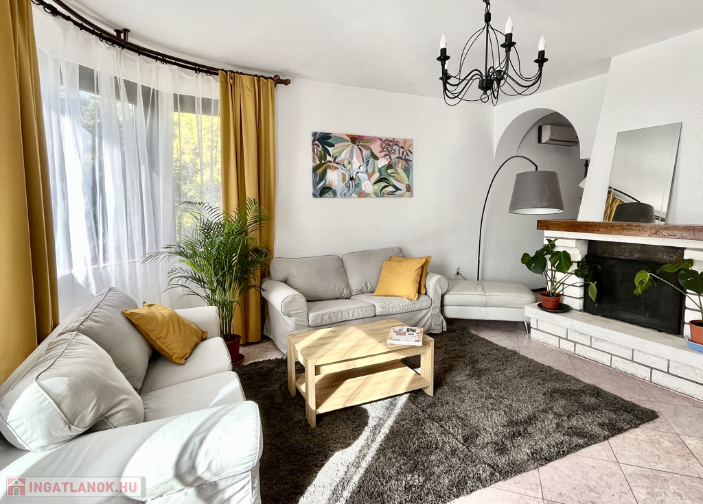 A szépen gondozott, növényekkel beültetett kertben elhelyezkedő - az 1990-es években épült, folyamatosan karbantartott, tégla építésű, minőségi kivitelezésű, jó állapotú, jó lakóközösségű, - négy lakásos ingatlan lakói számára biztosított a meghitt pihenés, gyermekek számára az önfeledt játék.