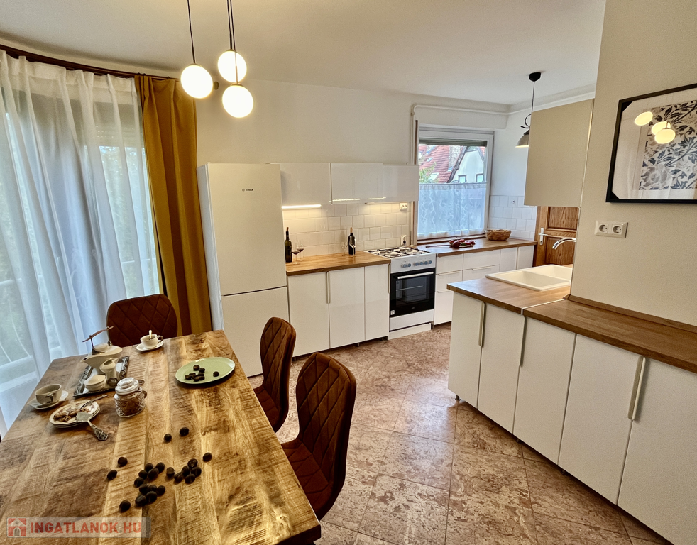 XI. Sashegy déli lejtőjén, a természetvédelmi terület szomszédságában, csendes, zöld, kertvárosi környezetben elhelyezkedő, világos, több erkéllyel bíró, frissen FELÚJÍTOTT, zöld PANORÁMÁS, emeleti, 5 szobás, AZONNAL KÖLTÖZHETŐ lakás hosszútávra kiadó.